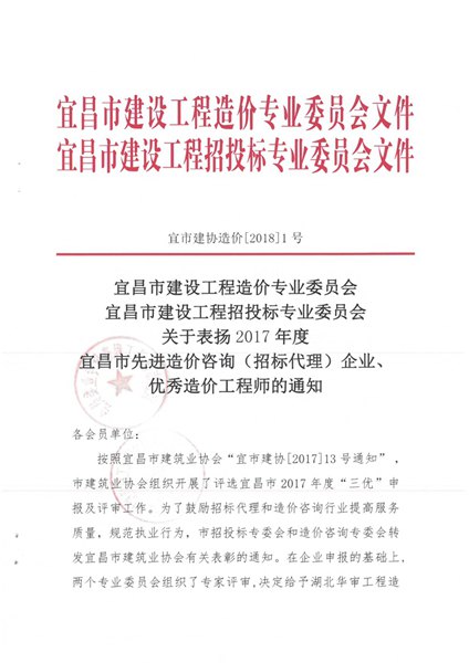 2017年度宜昌市先进造价咨询(招标…