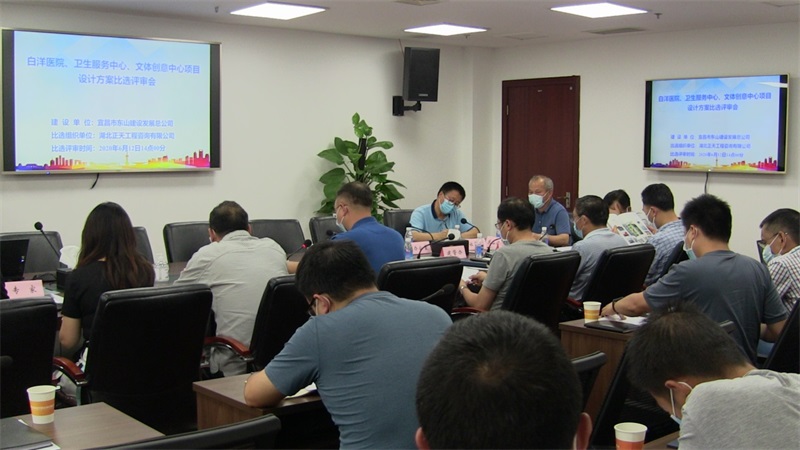 6月12日下午2时,在高新区管委会910会议室,我中欧网页版登录入口受宜昌市东山建设发展总中欧网页版登录入口的委托,组织开展了白洋医院、卫生服务中心、文体创意中心项目设计方案比选评审会。高新区管委会程鹏主任及各部门代表出席了会议,邀请了5名专家评委。