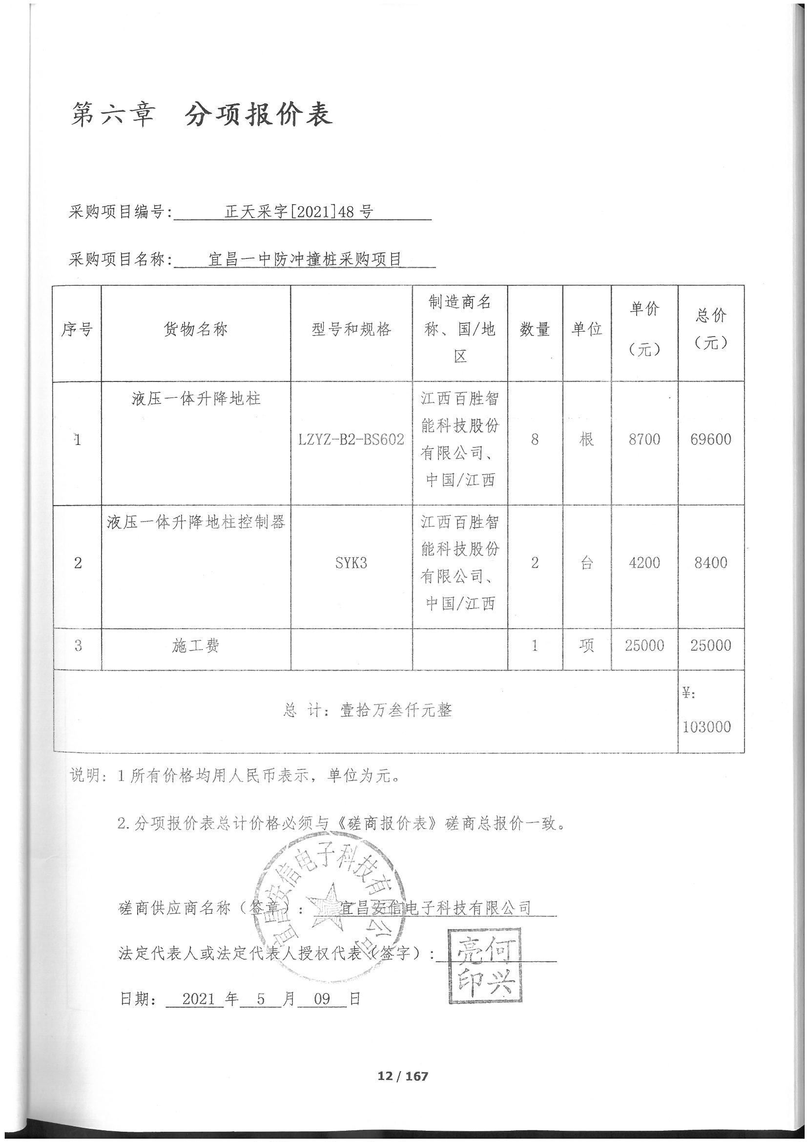 名称:宜昌一中防冲撞桩采购项目 品牌:详见附件 规格型号:详见附件 数量:详见附件 单价:详见附件(第一轮报价) |