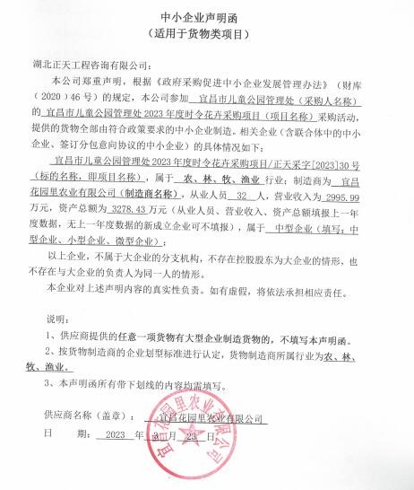 二、项目名称:宜昌市儿童公园管理处2023年度时令花卉采购项目