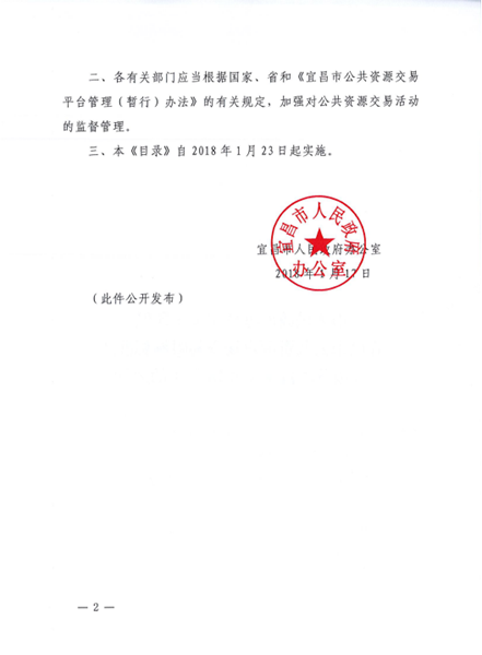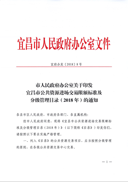 市人民政府办公室关于印发宜昌市公共资源进场交易限额标准及分级管理目录(2018年)的通知